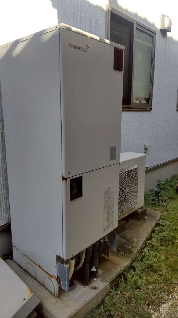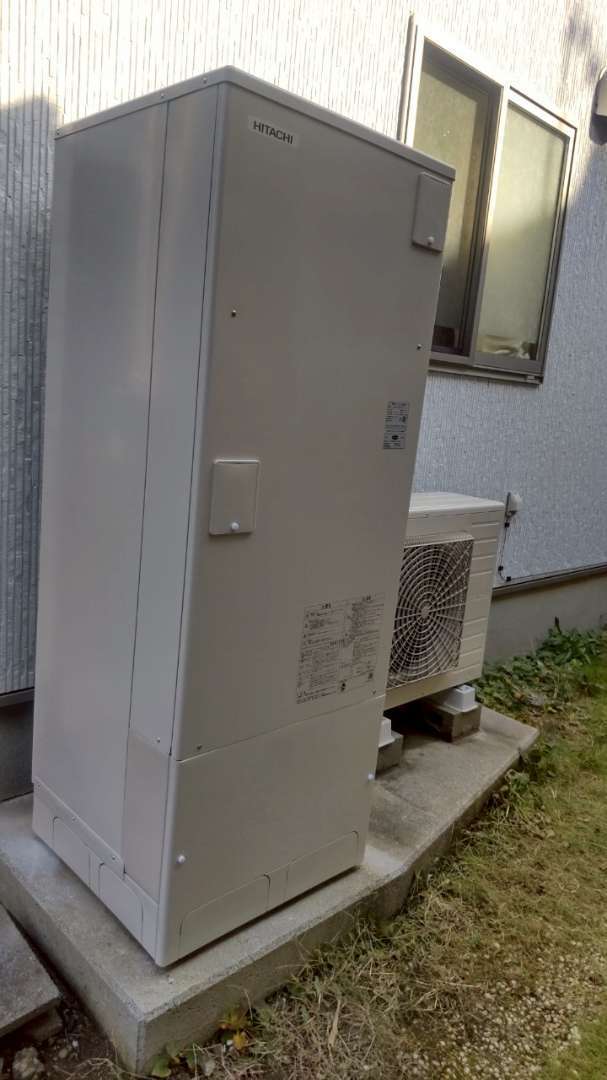 【After】ではHITACHI BHP-FG37WUへ交換。省エネ性能が高く効率よくお湯を沸かせるため、ランニングコストの削減につながり、冬場の給湯トラブルの心配も軽減されました。外観もすっきりとし、庭先の景観を損ねない仕上がりとなっています。